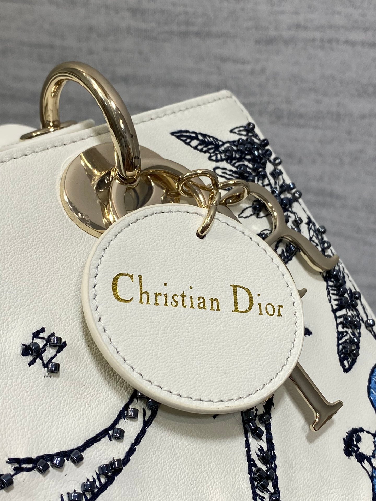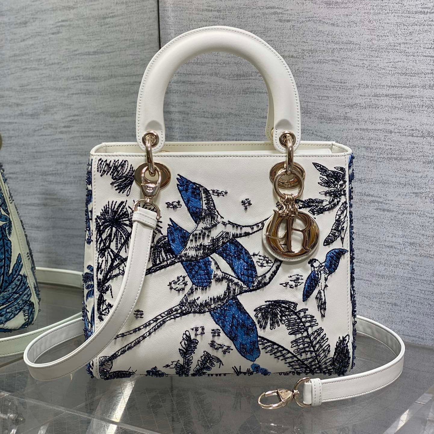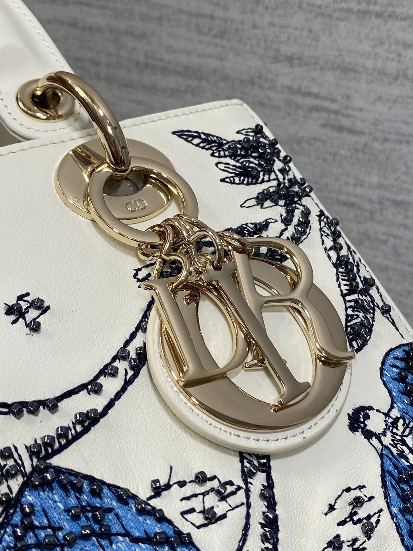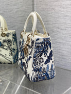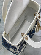Lady Bag 20cm White Calfskin Blue Black Embroidery