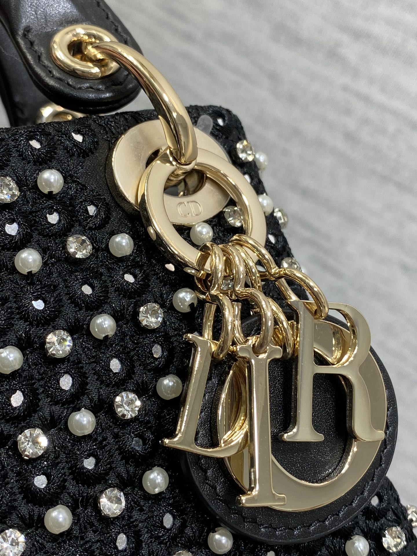 Lady Micro Bag 10cm Black Fabric Embelished With Crystal/ Pearl