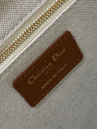 Medium Book Tote 37 Beige Oblique Embroidered Raffia Camel Calfskin