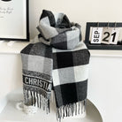 CHECK SCARF 180 CM IN BLACK MIX WHITE CASHMERE AND WOOL 415299