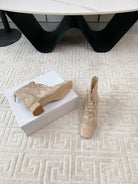 CD Naughtily-D Heeled Ankle Boot Beige Transparent Mesh Roses Embroidery And Suede