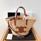 Celine Teen Supple Classic Panier 22cm Brown Calfskin Beige Raffia