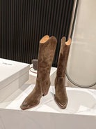 CELINE 25 Mid Calf Cowboy Boots Dark Brown Suede