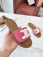 Celine 25C Slippers Red mix White Fabric with Calfskin 238167