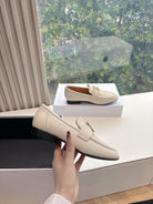 CELINE Buckle Triomphe Loafers White Leather 285957
