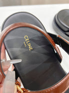 CELINE MAUD SANDAL WITH TRIOMPHE DEEP BROWN COWHIDE 236756