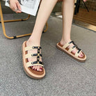 TIPPI SLIDE IN CANVAS & CALFSKIN NATURAL BROWN CREAM/ BLACK