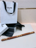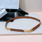 CL SMALL 18 MM SQUARE ADJUSTABLE BELT IN BRONZE BROWN LEATHER GOLD HARDWARE