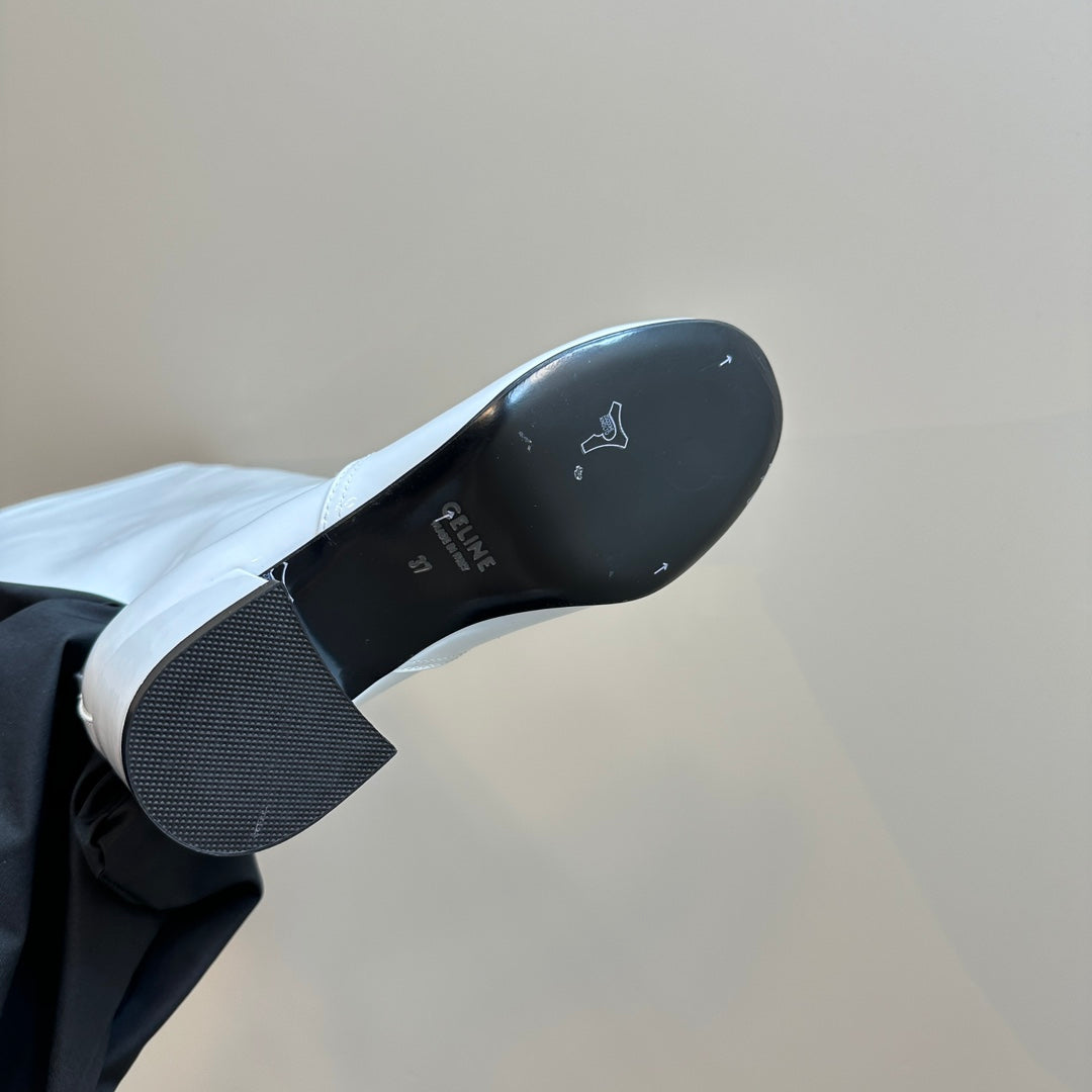 TRIPHOME CHUNKY HEEL BOOTS IN WHITE SHEEPSKIN