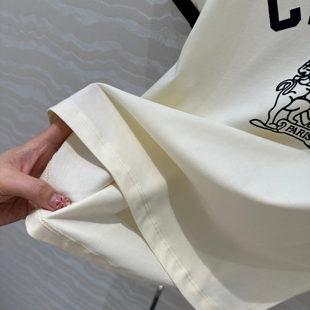 Celine 25 Arc de Triomphe Letter Short Sleeve T-shirt Off-white mix Black Cotton