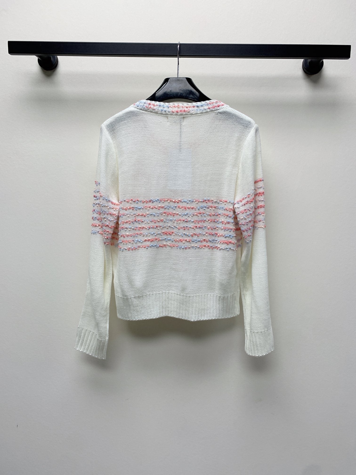 Celine 25 Striped Cardigan White Wool Polyester 281502