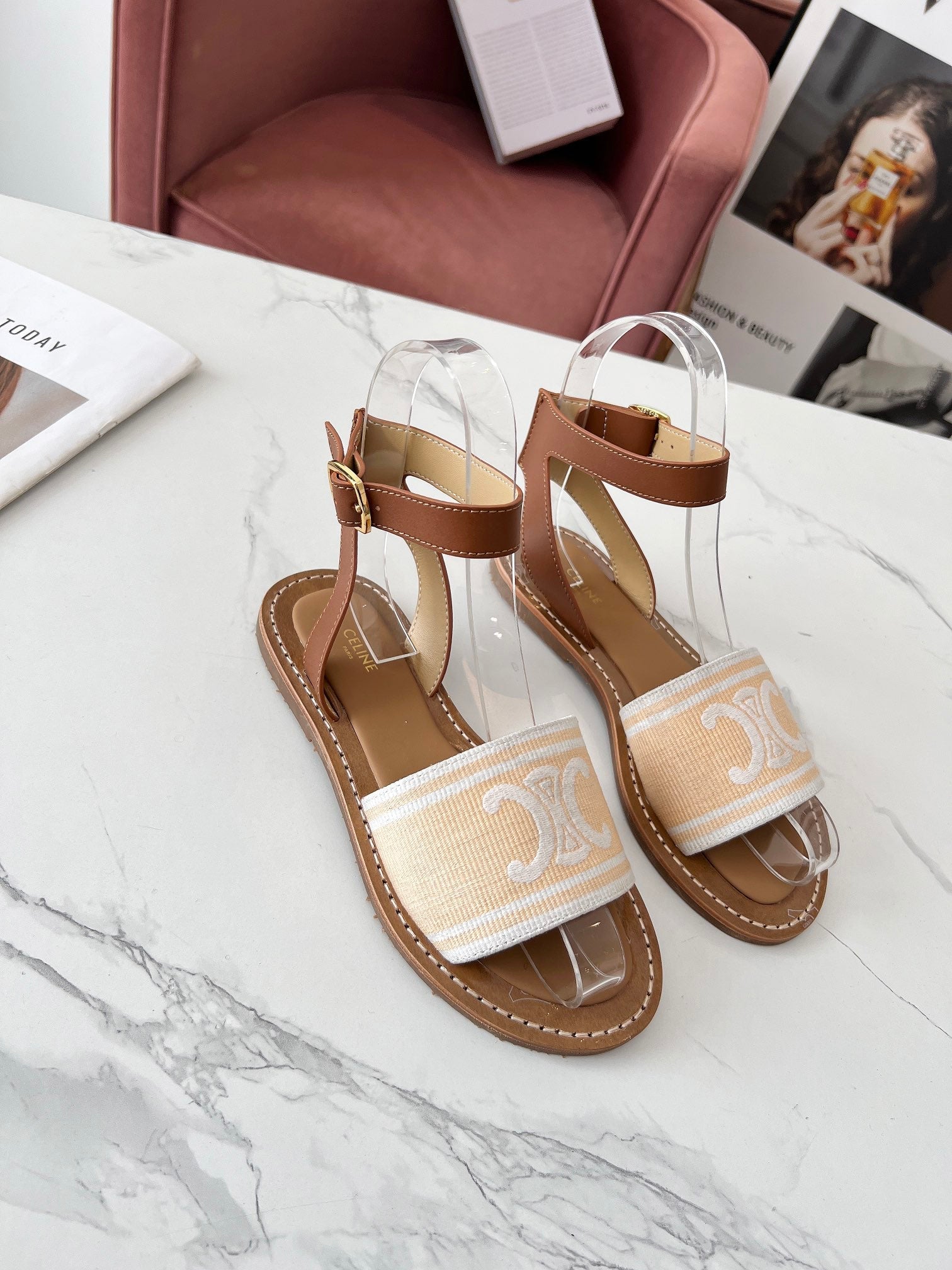 Celine 25C Lympia Sandal Cream with White Canvas with Calfskin 238172