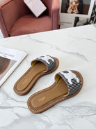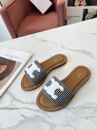 Celine 25C Slippers Black mix White Fabric with Calfskin 238169
