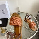 LYMPIA SANDAL IN BRONZE BROWN TRIOMPHE MACCRAMÉ COTTON AND TAN CALFSKIN