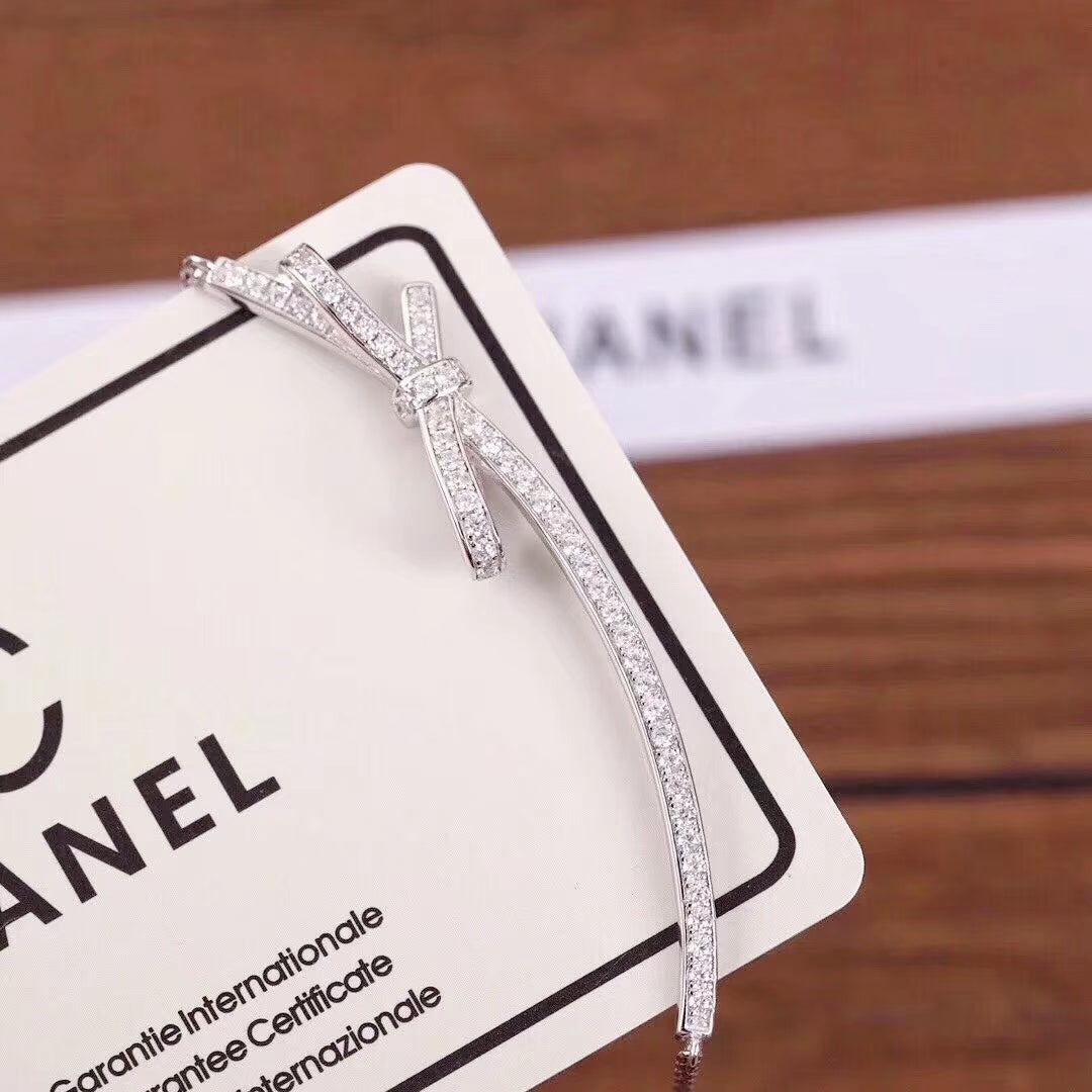 CHANE RUBAN BOW SILVER DIAMOND NECKLACE