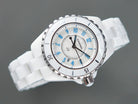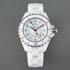 J12 Date Quartz White Ceramic Blue Numerals White Dial