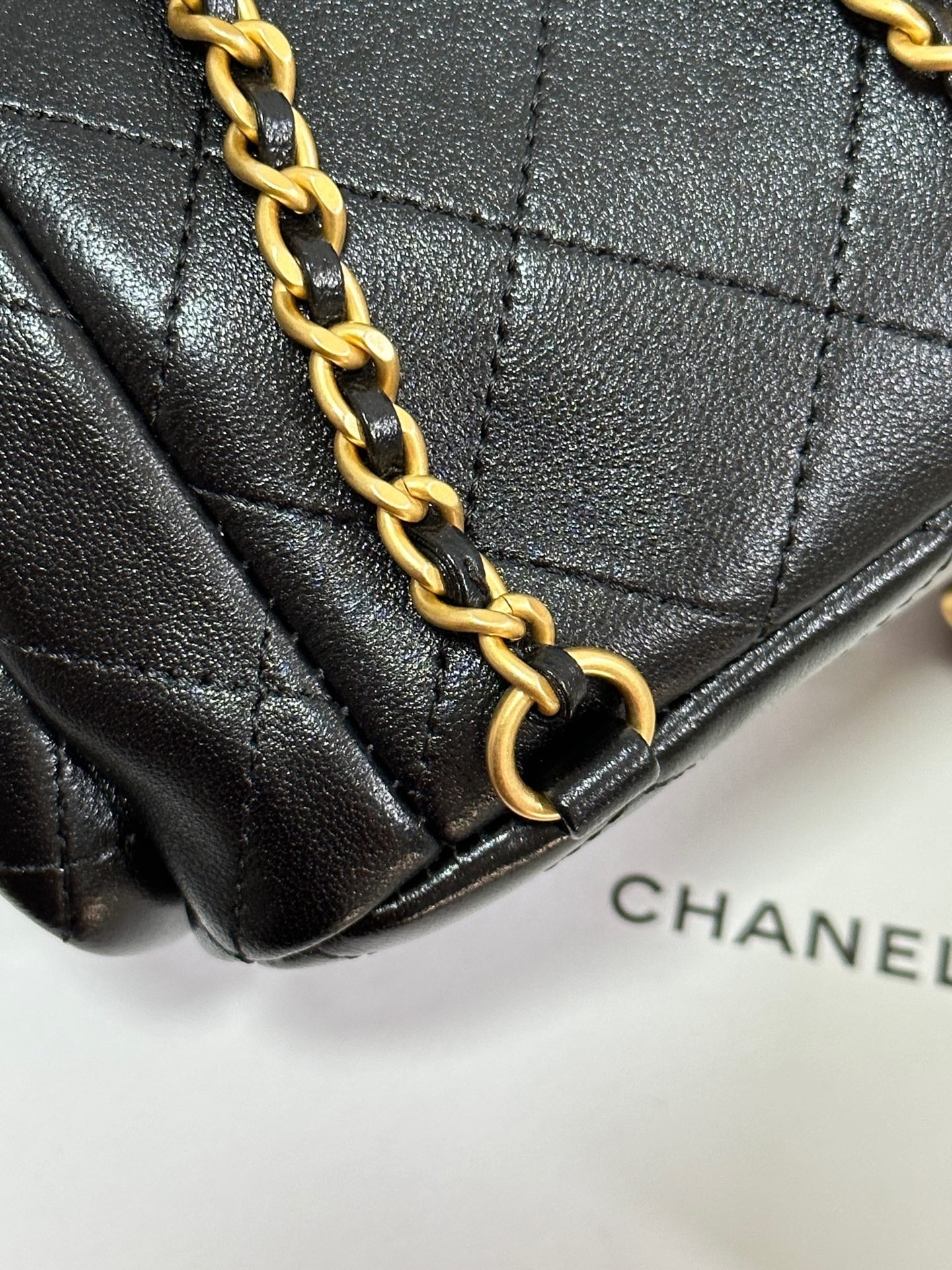 CC 25C Backpack 24.3cm Black Genuine Lambskin Gold Hardware243672