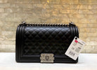 BOY BAG MEDIUM 25 BLACK QUILTED LAMBSKIN AGED RUTHENIUM HARDWARE