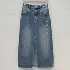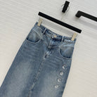 CC 25 Embroidered Midi Skirt Blue Denim Cotton