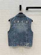 CC 25 Embroidered Vest Jacket Blue Denim Cotton