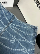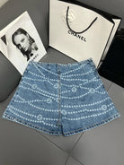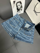 CC 25 Printed Blue White Washed Short Denim