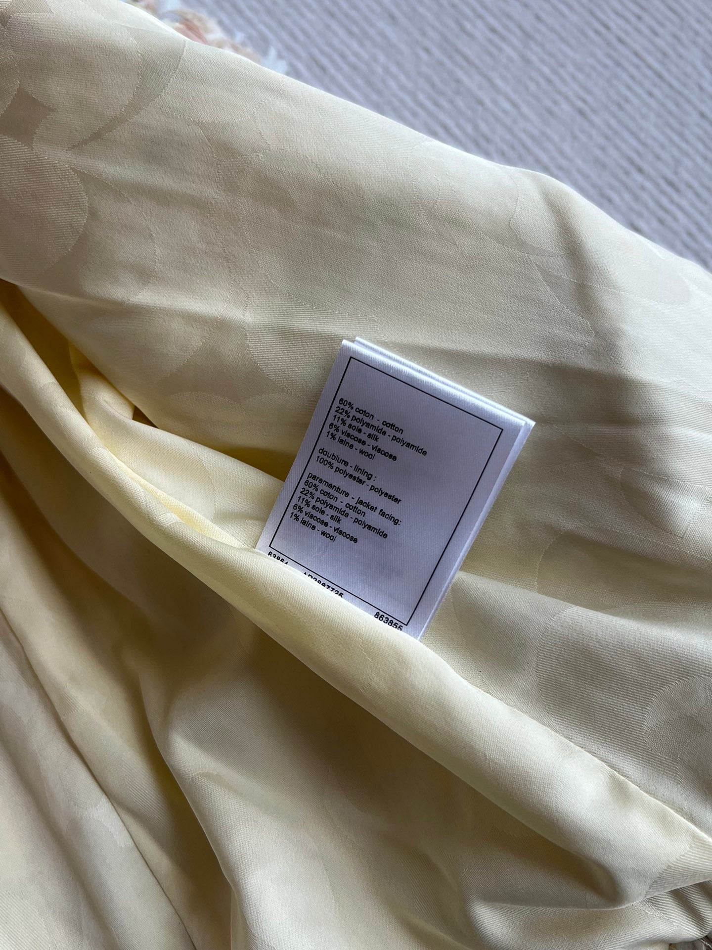 - Material: 60% coton - 22% polyamlde - 11% silk - 6% viscose - 1% Wool