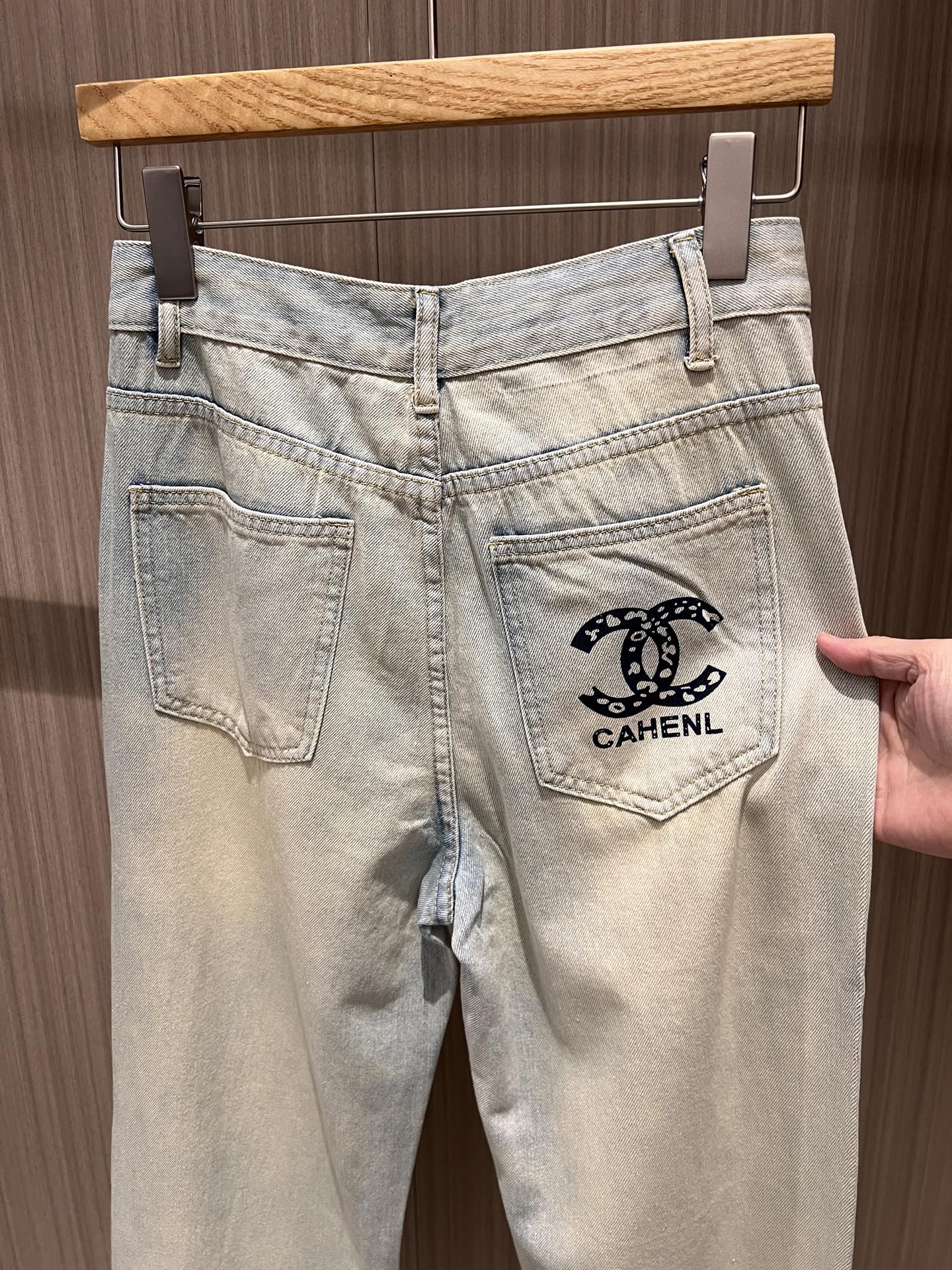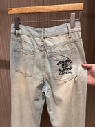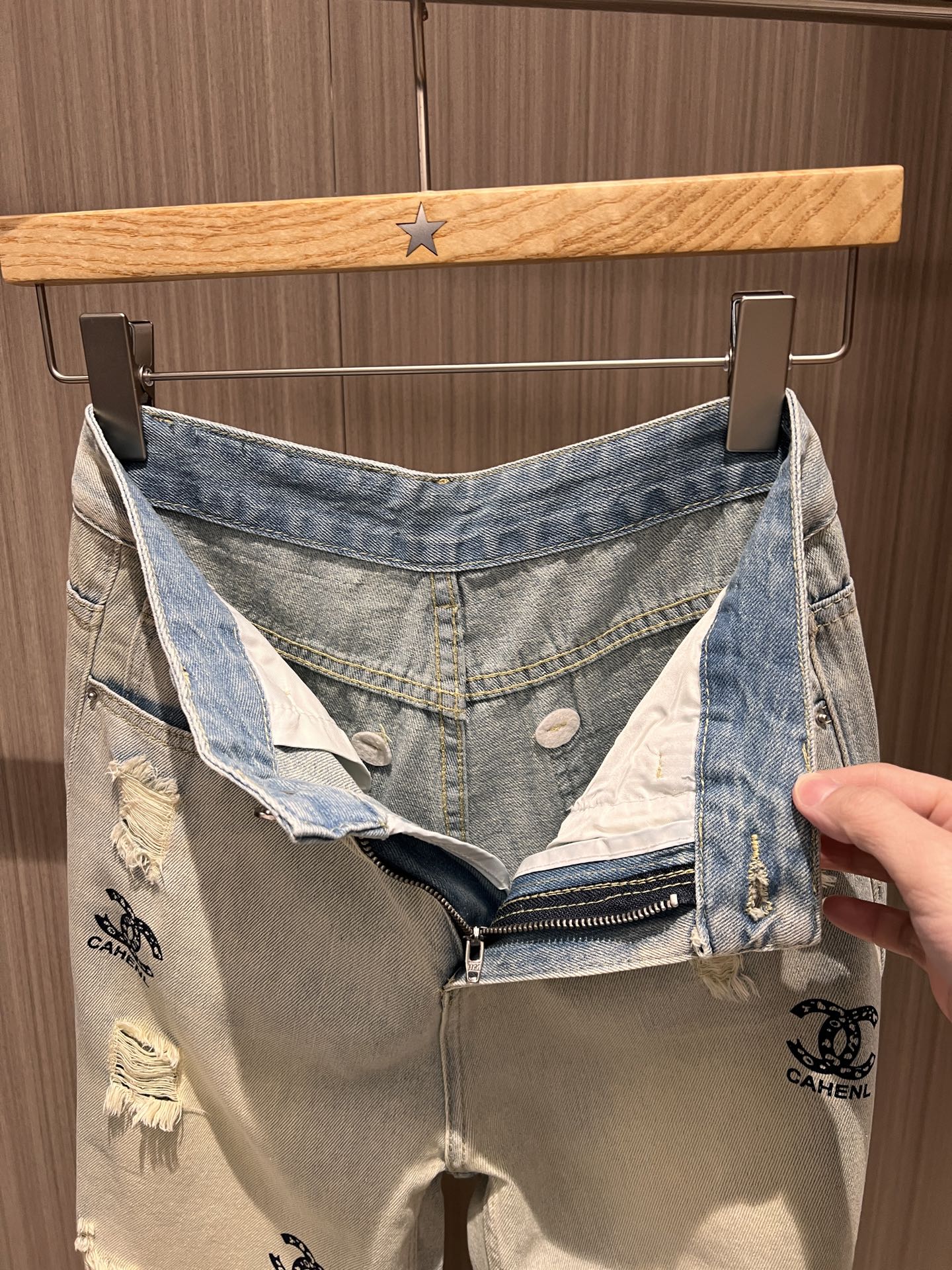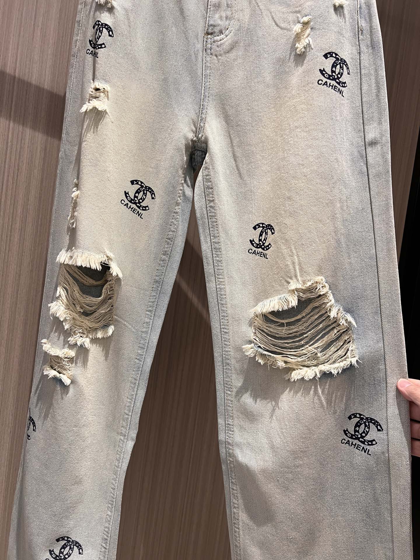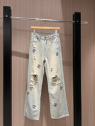 CC Double C Printed Ripped Jeans Retro Light Blue Cotton