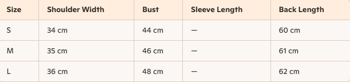 - Size : S, M,L