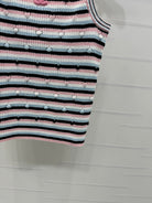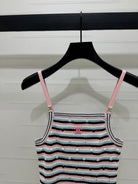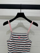 Chanel 25 Pink Black Striped Knit Tank Top