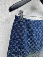 GG Blue Monogram Crystal Embellished Mini Skirt