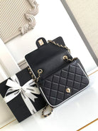 CC 25P Mini Flap Bag 20cm Black White Calfskin