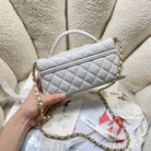 CC 25P Mini Flap Bag 22cm Top Handle Grey Calfskin Gold Hardware