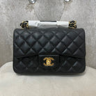 Flap Bag Mini 20cm Black Grained Calfskin Gold Hardware