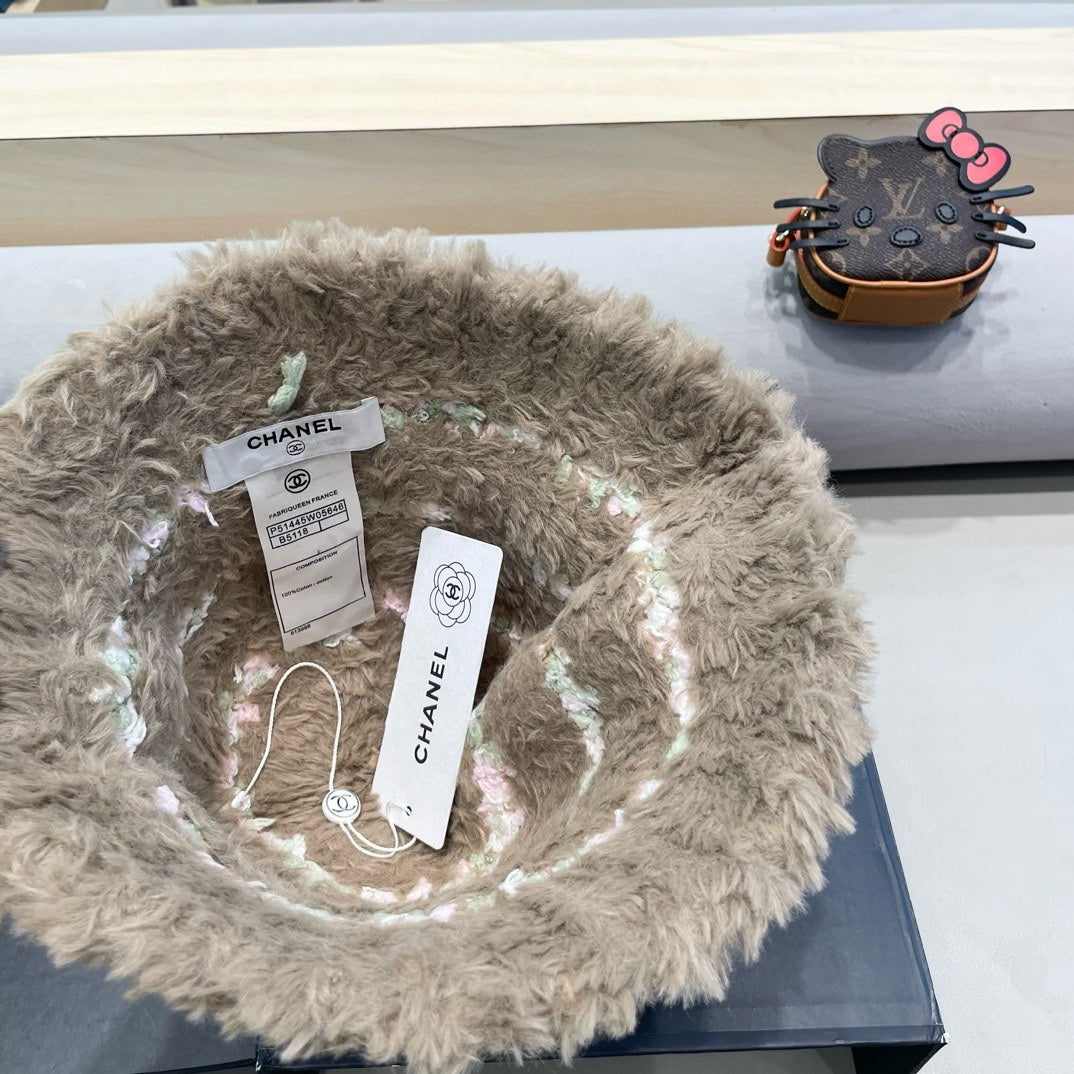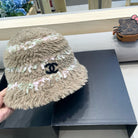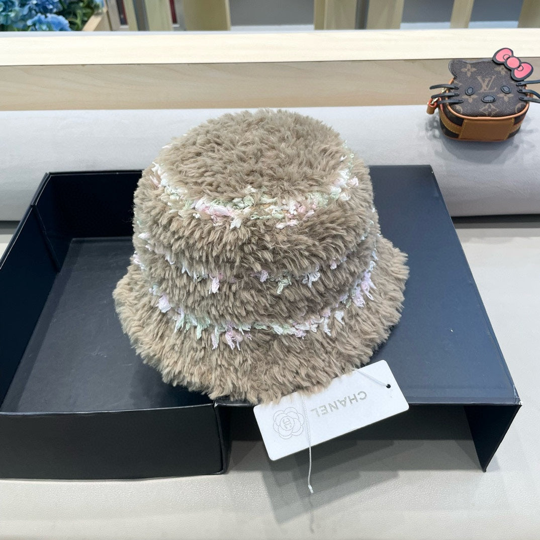 • Stylish plush bucket hat for women, suitable for autumn and winter, designed for warmth with a mixed-color look.