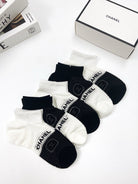 • Classic double C logo ankle socks with square large heel and thin, hollow design.
