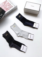 • Classic mid-cut socks with gold and silver letter logo from CC.