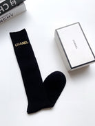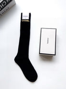 • Classic pair of long socks with letter logo from CC, pure cotton fabric