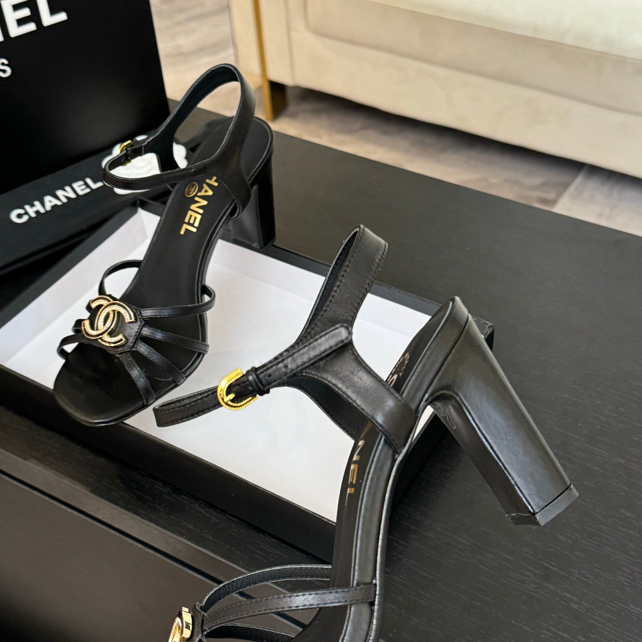 CC 85mm Sandal Black Sheepskin 212929