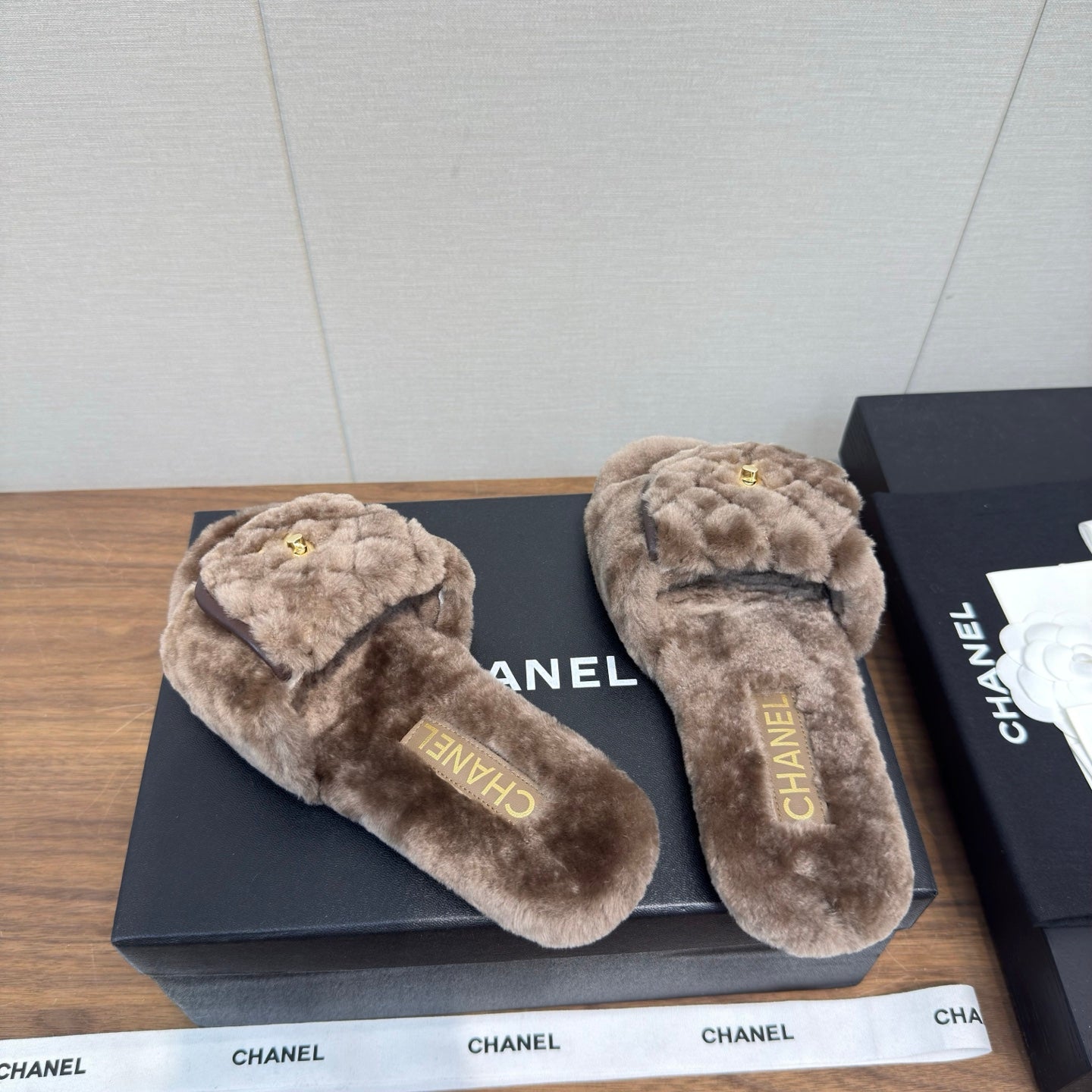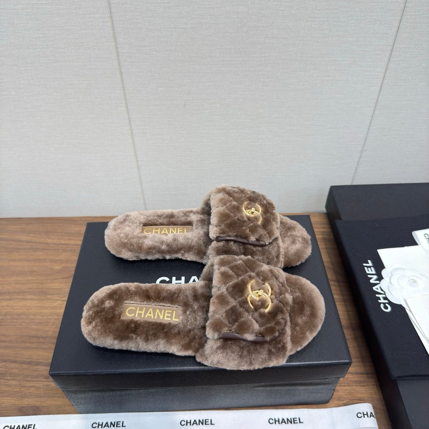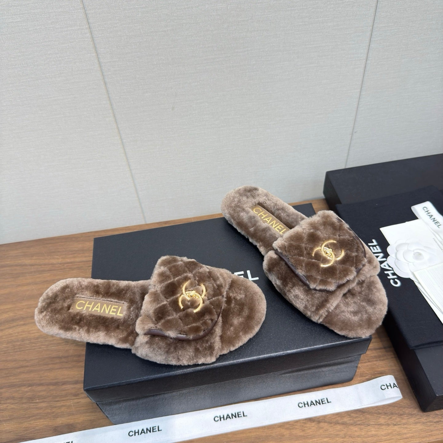 Chanel 25 Slipper Brown Smooth Lambwool 465600