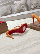 CL 25 Cross-Strap Slippers Orange Gloss Calf Patent Leather Rivets 314924
