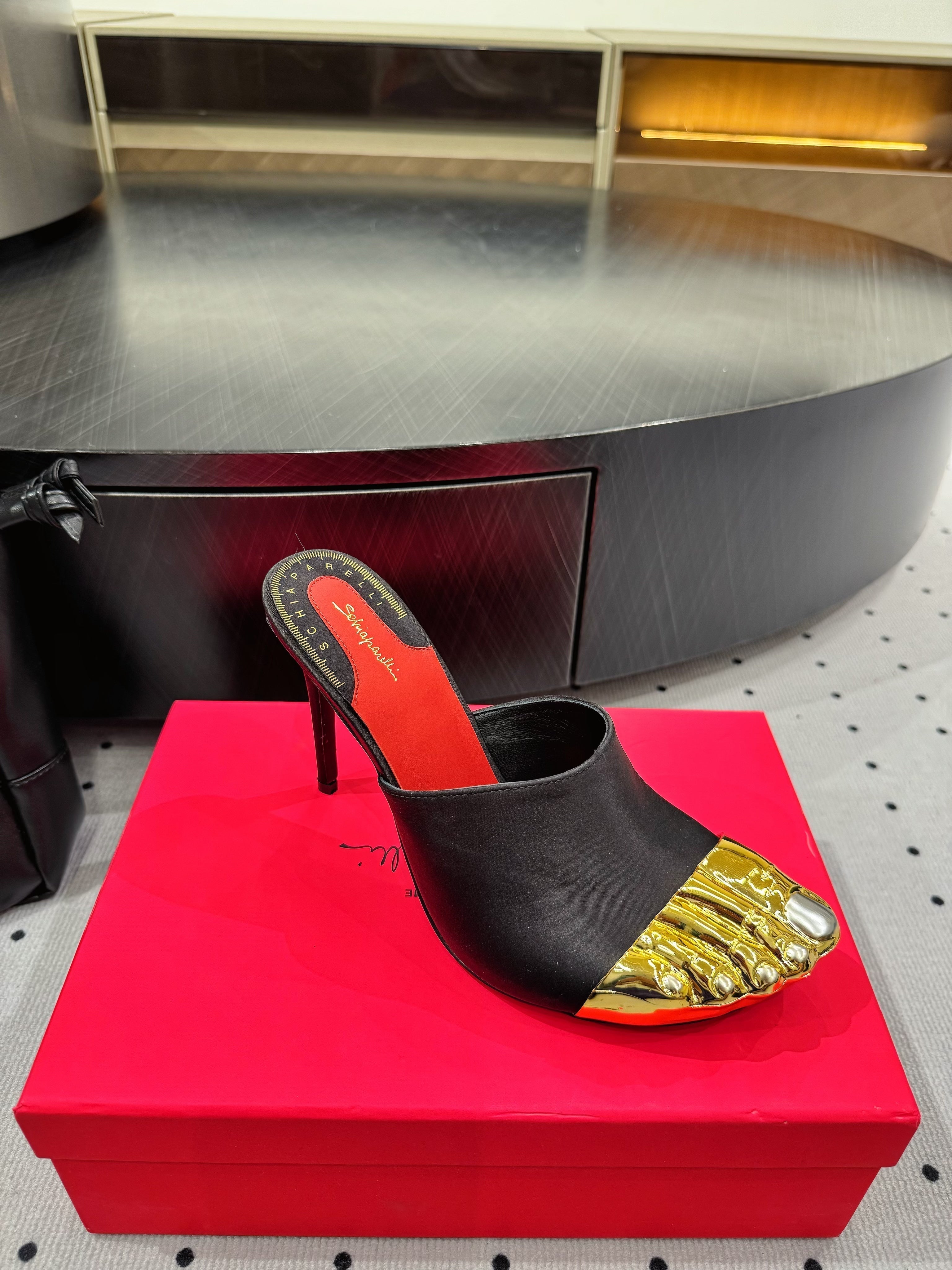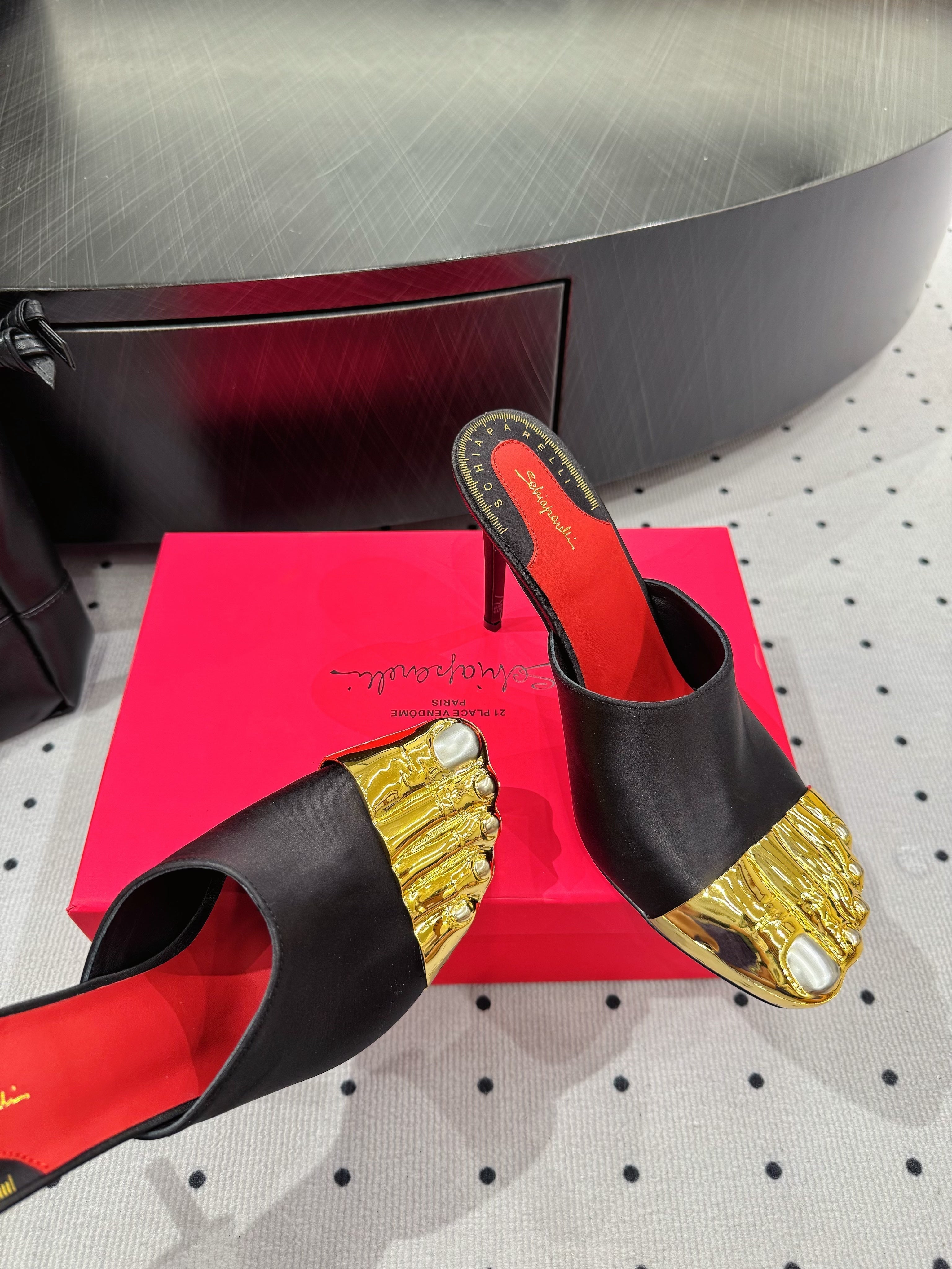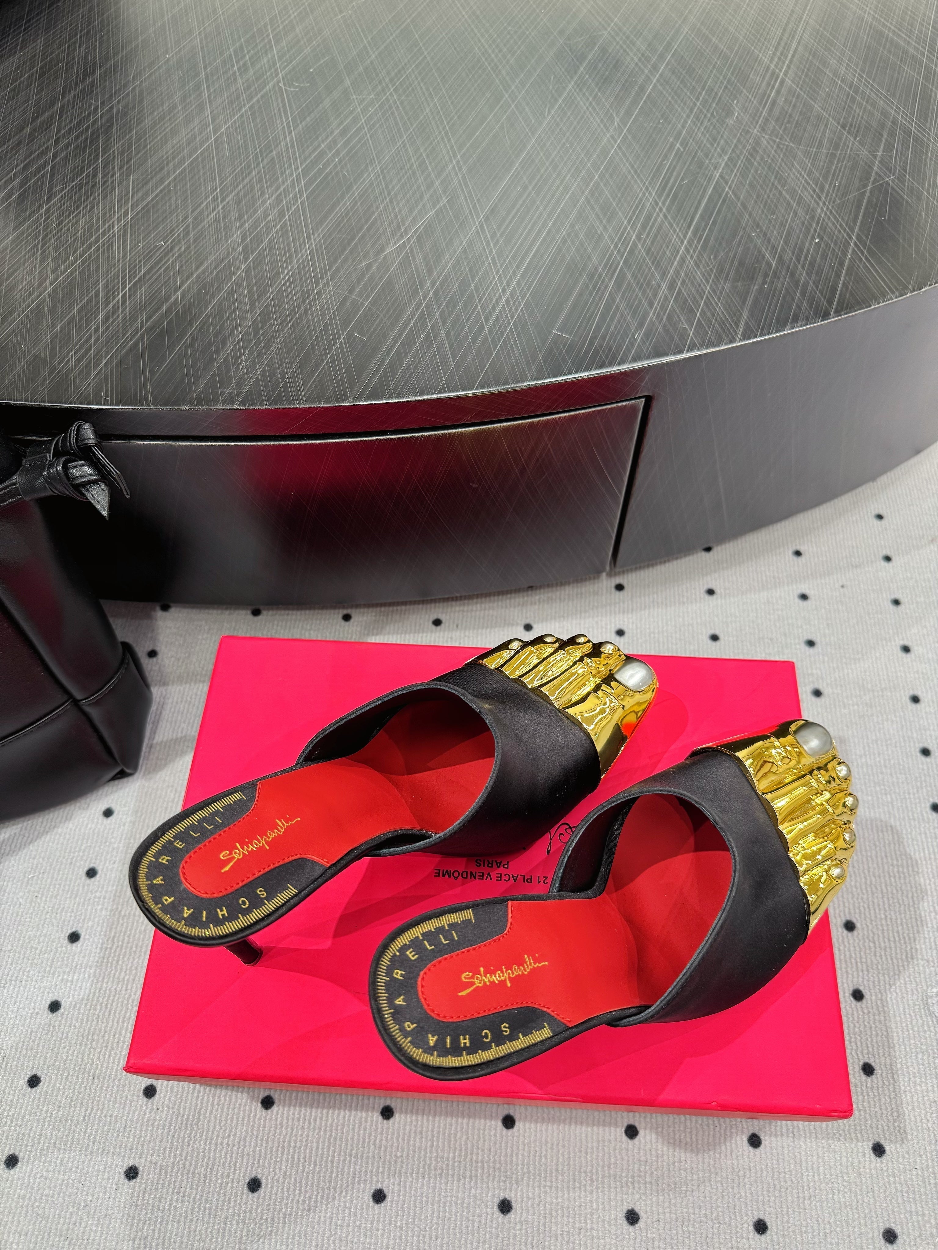 CL 25 Elsa Schiapar Mules Black Gold Silk 321607