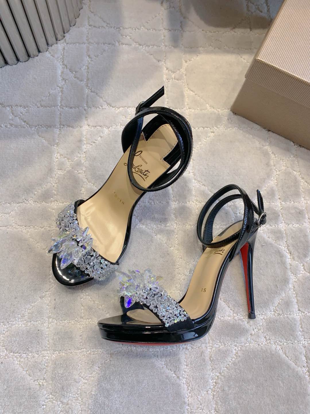 CL Crystal Queen 120 Sandal Black Patent Leather 177122