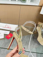 CL So Me 105 mm Strappy Sandal Cream Imported Rivets with Sheepskin 251017