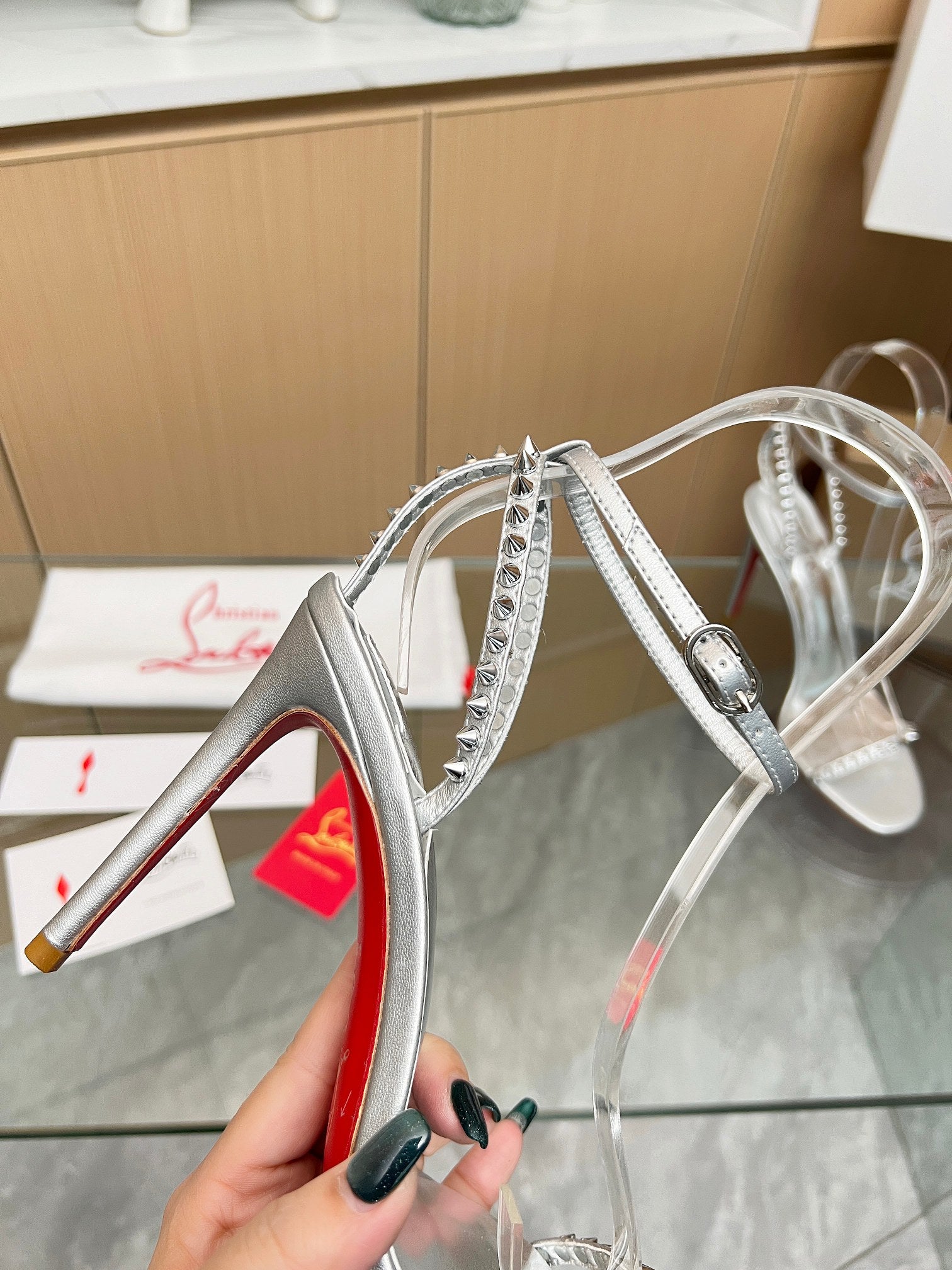 CL So Me 105 mm Strappy Sandal Silver Imported Rivets with Sheepskin 251016