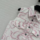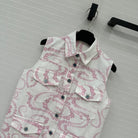 CC 25 Printed Denim Vest Jacket Pink White Cotton
