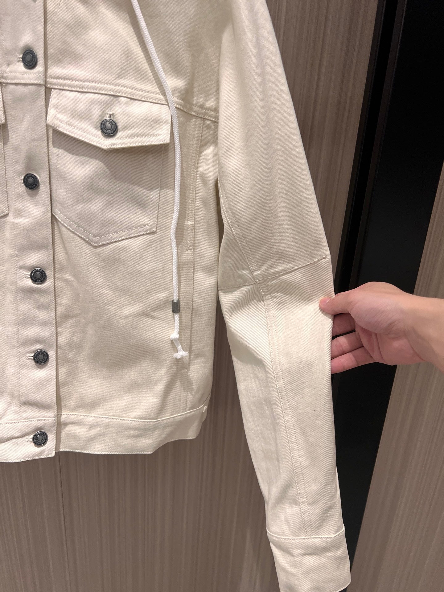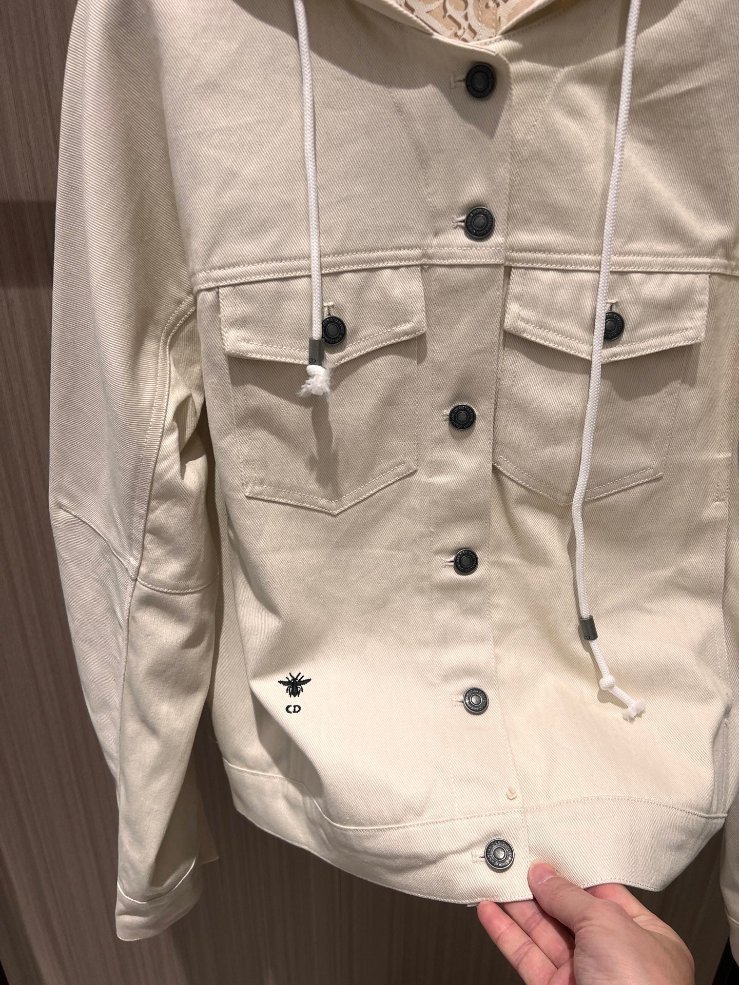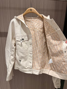 CD Hooded Denim Jacket With Monogram Lining White Beige Cotton