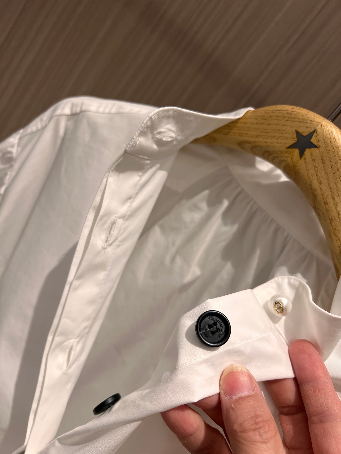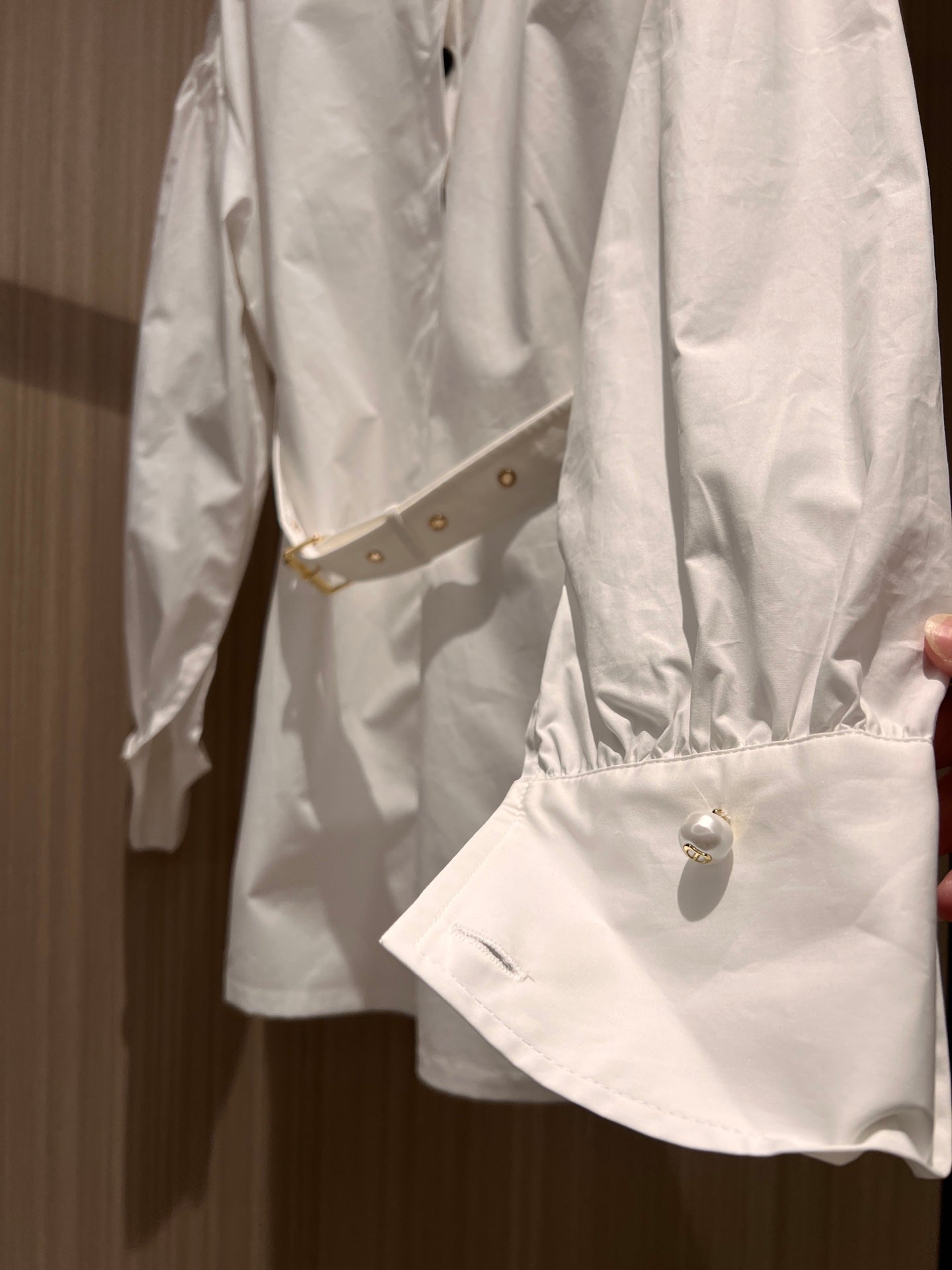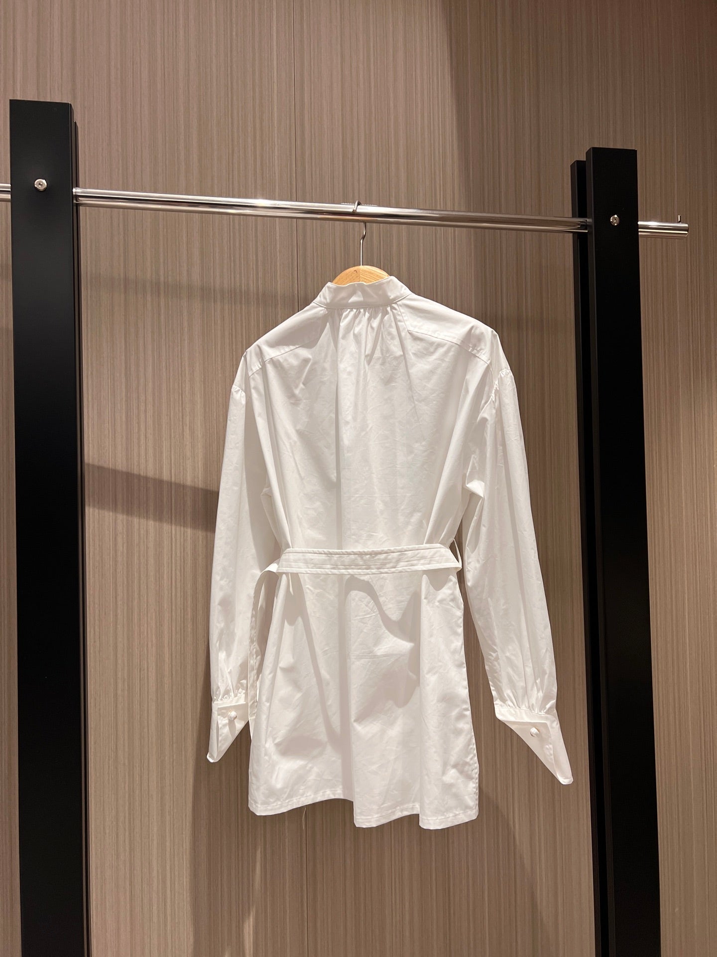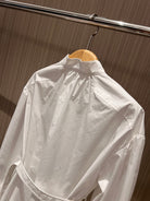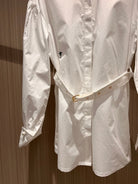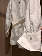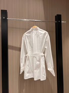 CD Stand-up Collar Long-sleeved Shirt Dress White Cotton