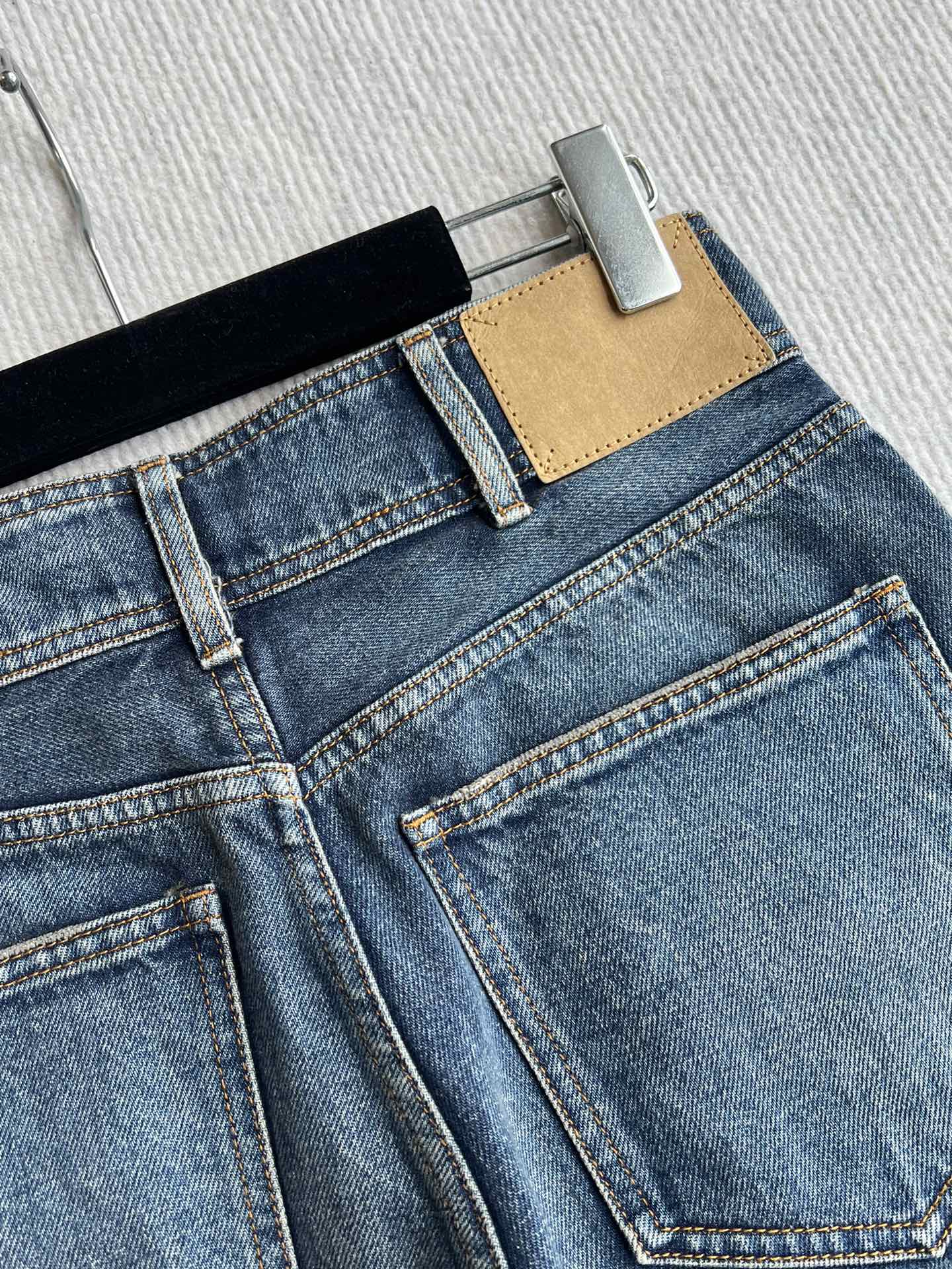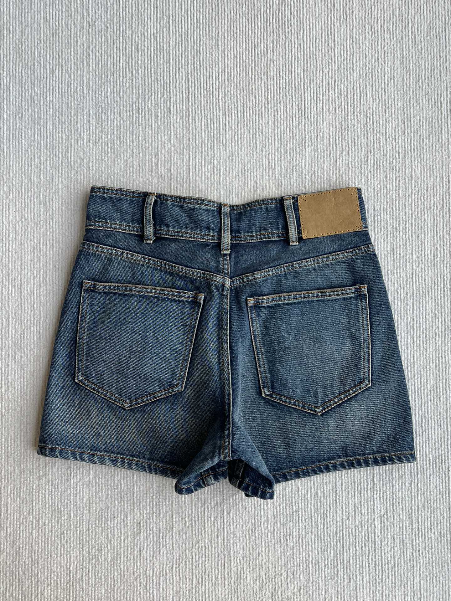 Celine 25 Arc de Triomphe Metal Buckle Denim Shorts Blue Cotton 275804