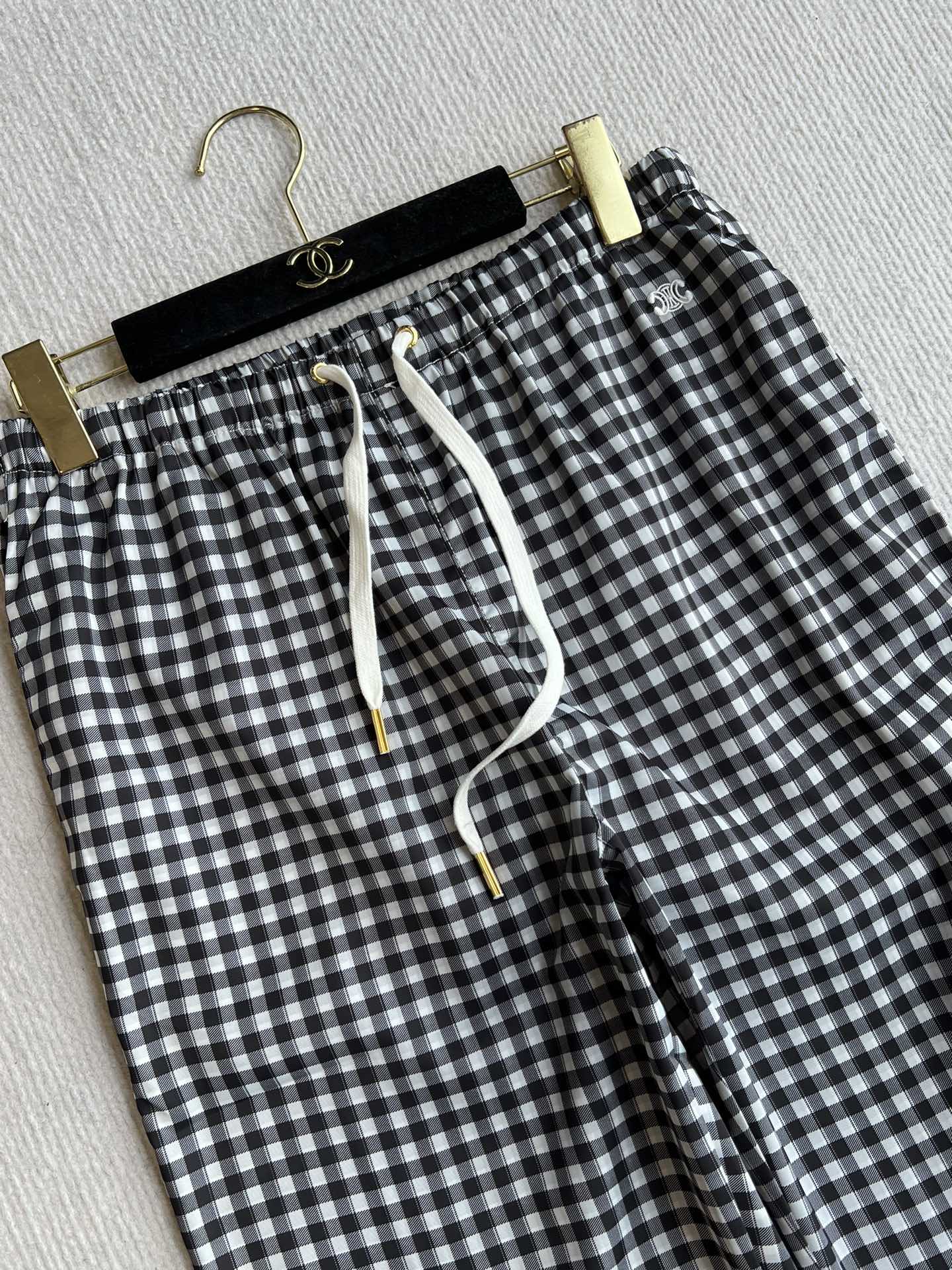 Celine 25 Arc de Triomphe Plaid Casual Pants Black White Polyester