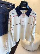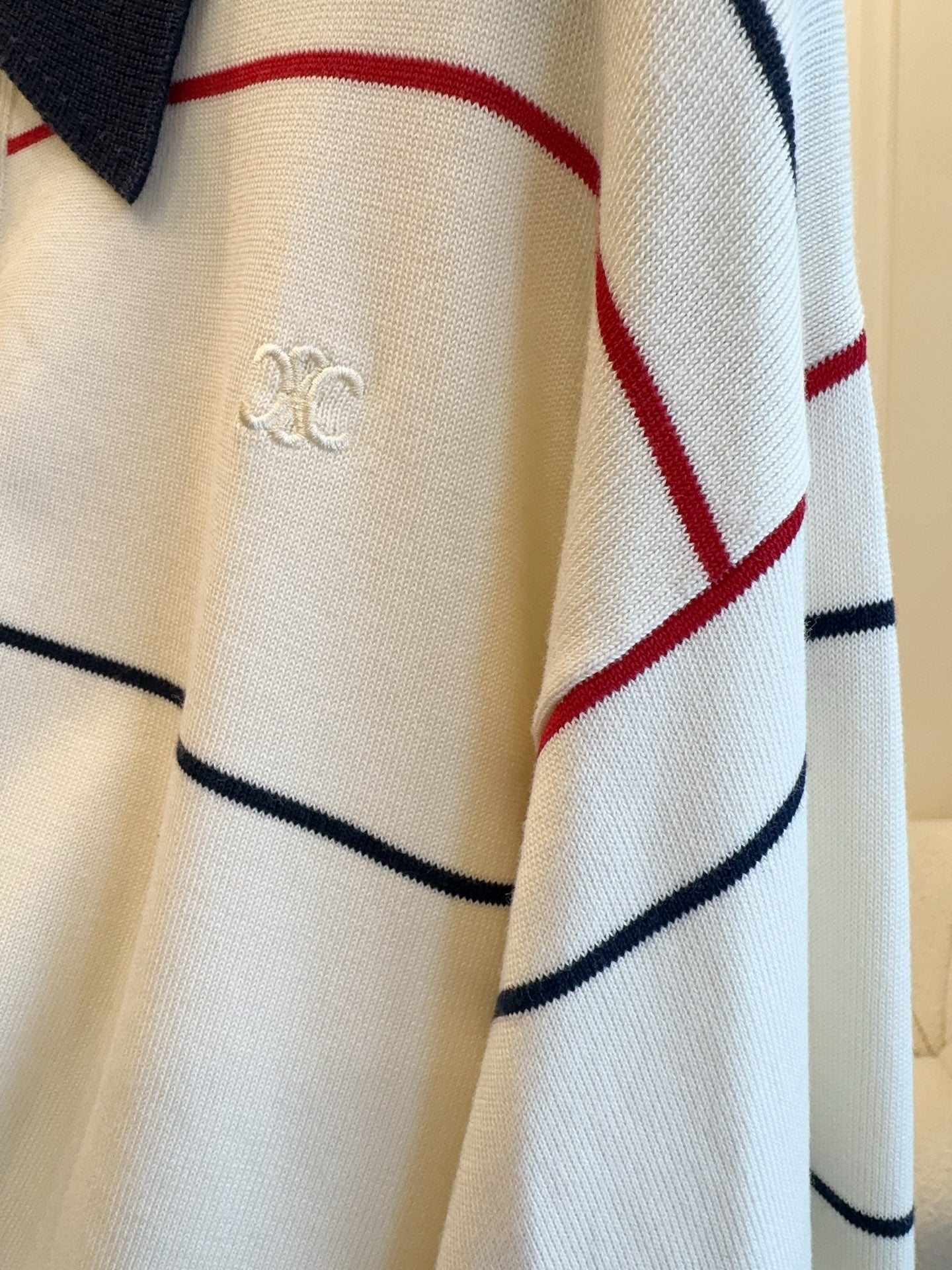 Celine 25 Polo Long Sleeves Shirt White Silk Cotton